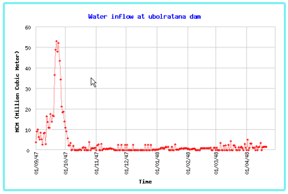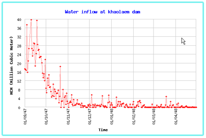 ![]() ปริมาณน้ำไหลเข้าเขื่อนอุบลรัตน์ |