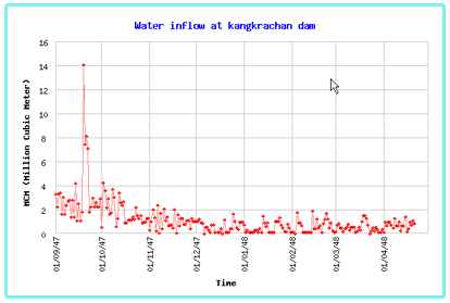 ![]() ปริมาณน้ำไหลเข้าเขื่อนแก่งกระจาน |