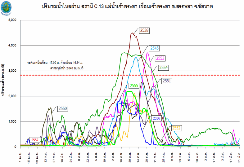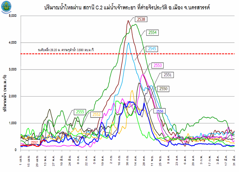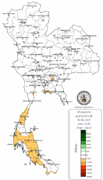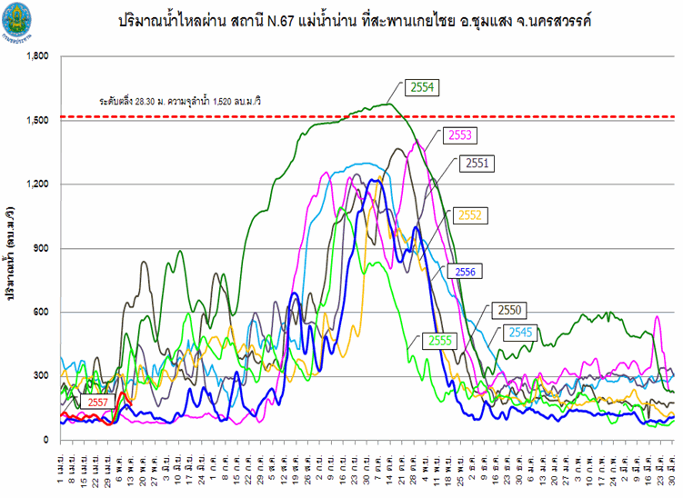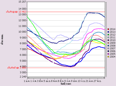 (น้อยกว่าปี 2548 และ 2553 ที่ประเทศไทยเกิดภัยแล้งรุนแรง) และส่งผลให้ปริมาณน้ำต้นทุนของปี 2557 ค่อนข้างน้อย