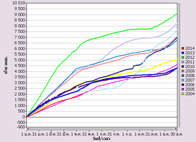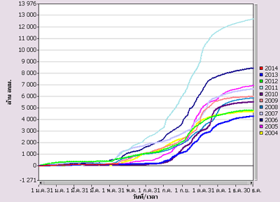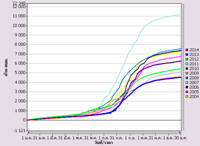 ![]() ฤดูแล้งปี 2555/2556 พ.ย. 2555- เม.ย. 2556 (281.43 มม.) |
