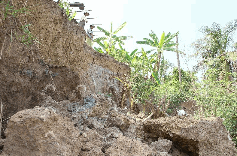 ส่วนนางสายหยุด ปิ่นประเสริฐ อายุ 61 ปี ชาวตำบลบ้านใหม่ กล่าวว่า พอหลังท่วมและเข้าหน้าร้อน ระดับน้ำจะลดต่ำลงมาก และที่ดินริมตลิ่งจะพังตามลงไป เมื่อปีที่แล้วบ้านของตนเองก็พังเสียหาย และตนเองก็รื้อย้ายมาปลูกห่างจากจุดเดิม 100 เมตร แต่มาวันนี้ติล่งพังเข้ามาหาตนเองอีก 30 เมตร เชื่อว่าหากยังพังต่อไป ปีหน้าจะพังถึงบ้านที่เคยรื้อหนีมากปลูกอีกครั้ง และตนเองก็ไม่มีเงินจะไปรื้อหนีแล้ว เพราะของเก่ายังใช้หนี้สินไม่หมด