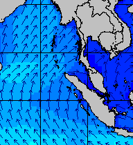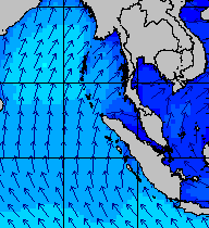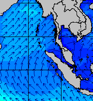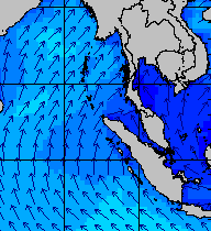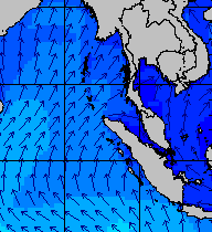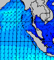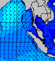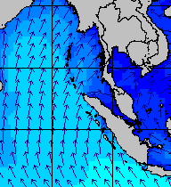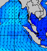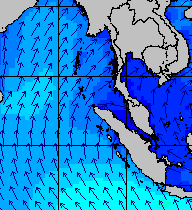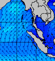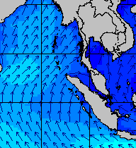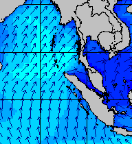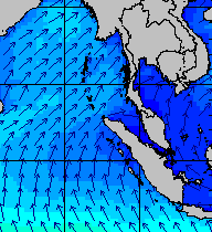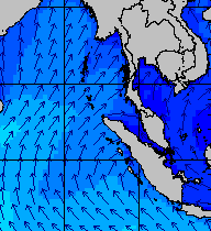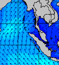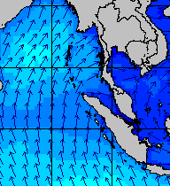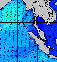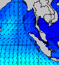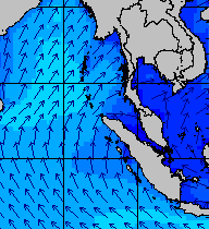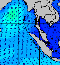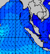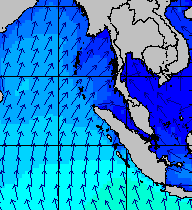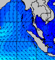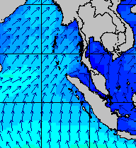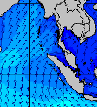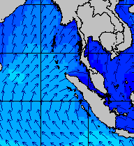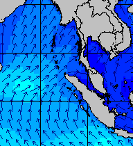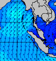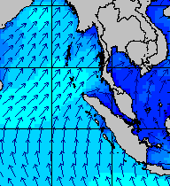จากแผนภาพแสดงความสูงของคลื่นและทิศทางของคลื่นช่วงเดือนสิงหาคม 2557 พบว่าเกิดคลื่นลมแรงบริเวณทะเลอันดามันเป็นระยะ ๆ โดยเฉพาะช่วงวันที่ 4-7 สิงหาคม ที่ความสูงของคลื่นเพิ่มขึ้นเป็น 2-4 เมตร