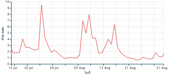 แต่โดยส่วนใหญ่เป็นน้ำล้นตลิ่งที่เกิดในระยะเวลาสั้น ๆ สถานการณ์เข้าสู่ภาวะปกติได้โดยเร็ว รายละเอียดตามกราฟด้านล่าง