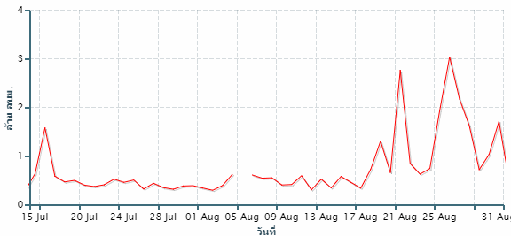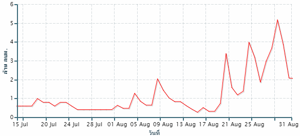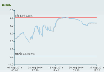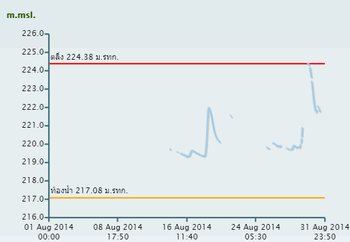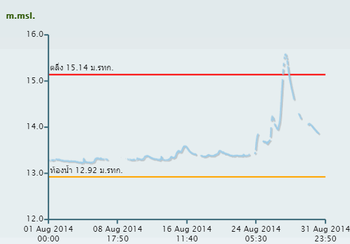 จากการตรวจวัดระดับน้ำโดยสถานีโทรมาตรตรวจวัดระดับน้ำของสถาบันสารสนเทศทรัพยากรน้ำและการเกษตร (องค์การมหาชน) พบว่า จากเหตุการณ์ฝนตกช่วงเดือนสิงหาคม ทำให้เกิดน้ำล้นตลิ่งในหลายจุด