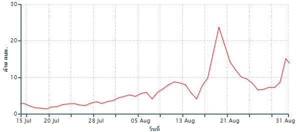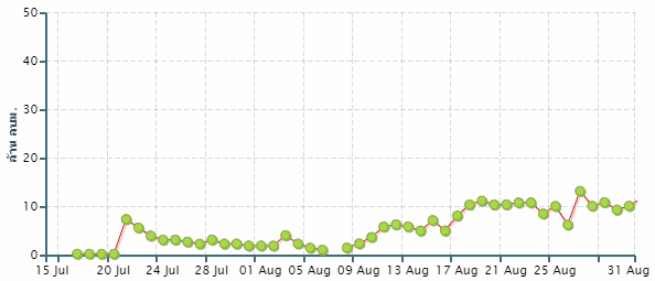 ก่อนเคลื่อนไปปกคลุมประเทศพม่าในช่วงวันที่ 29-30 สิงหาคม ประกอบกับมีมรสุมตะวันตกเฉียงใต้พัดปกคลุมทะเลอันดามัน