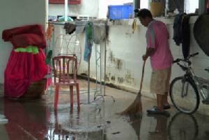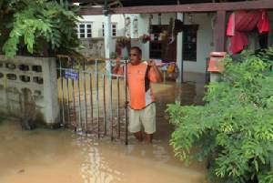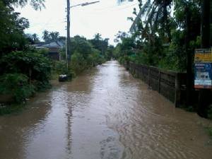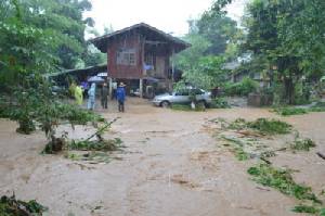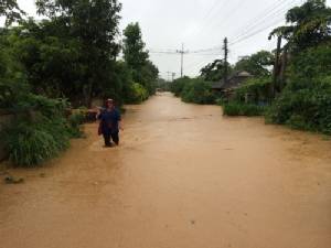เอ่อล้นนตลิ่งเข้าท่วมพื้นที่ริมน้ำในเขตเทศบาลเมืองระนองบริเวณถนนหน้าสํานักงานสาธารณสุขจังหวัด สํานักงานปฏิรูปที่ดิน สะพานยูง และโรงแรมเฮริเทจ เนื่องจากเป็นที่ลุมต่ำและน้ำระบายไม่ทัน
