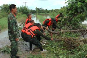 ครัวเรือน 11,200 คน พื้นที่การเกษตรได้รับความเสียหาย 17,479 ไร่ บ่อปลา 161 บ่อ ถนน 51 สาย โรงเรียน