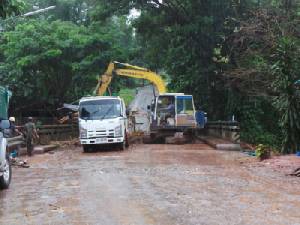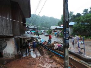 2) เกิดดินสไลด์ทําให้กําแพงถล่มทับรถยนต์และจักรยานยนต์ในพื้นที่ก่อสร้างอาคารที่พัก บริเวณถนนนาใน เป็นผลให้รถยนต์ที่จอดบริเวณก่อสร้างได้รับความเสียหาย 5 คัน (รถยนต์มูลนิธิร่วมกตัญญู 1 คัน) และรถจักรยานยนต์ 1 คัน