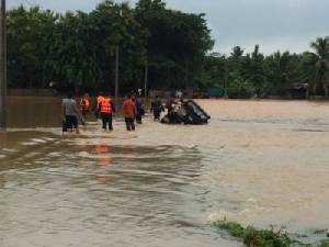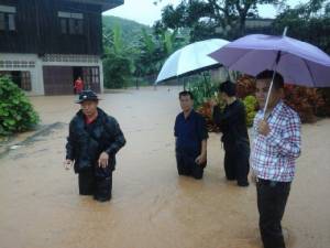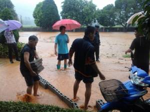 4) จังหวัดน่าน เมื่อ (29 ส.ค.57) เวลา 06.15 น. เกิดฝนตกหนักในพื้นที่ตอนบนของจังหวัดน่าน ทำให้เกิดน้ำป่าไหลหลากเข้าท่วมในพื้นที่ 5 อำเภอ (ทุ่งช้าง ปัว ท่าวังผา เชียงกลาง และเฉลิมพระเกียรติ) 11 ตำบล 26