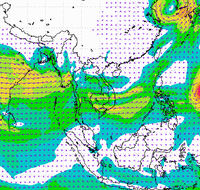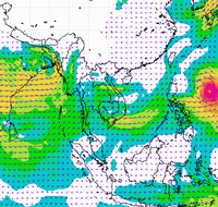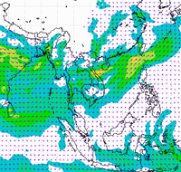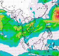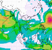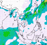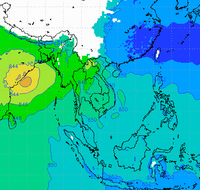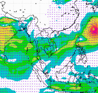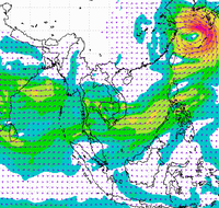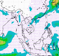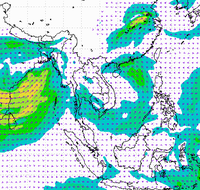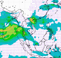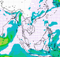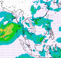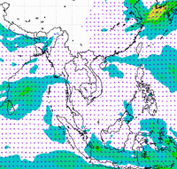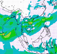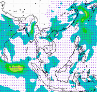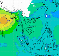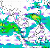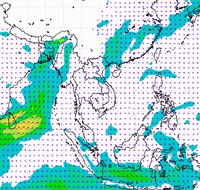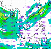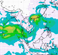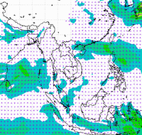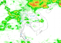 ประเทศไทย และอ่าวไทยอย่างต่อเนื่อง ทำให้บริเวณประเทศไทยตอนบนมีฝนตกหนาแน่น