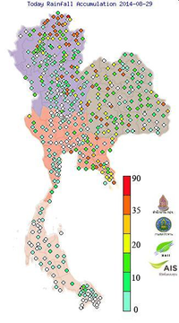 | 28/8/2014 | 7:00:00 | ฝน28/07-29/06น. | ต.ห้วยโก๋น | อ.เฉลิมพระเกียรติ | น่าน | จ.น่าน | 73.6 | เฝ้าระวังสูงสุด |