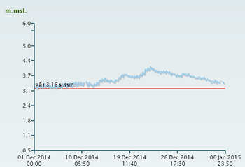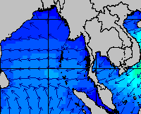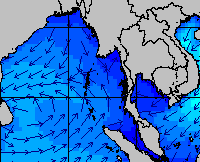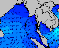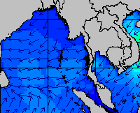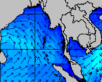 แผนภาพแสดงความสูงของคลื่นและทิศทางของคลื่นแสดงให้เห็นว่า จากอิทธิพลของมรสุมตะวันออกเฉียงเหนือกำลังค่อนข้างแรง ส่งผลให้ความสูงของคลื่นบริเวณอ่าวไทยเพิ่มขึ้นในหลายช่วง โดยเฉพาะบริเวณอ่าวไทยตอนล่างที่ความสูงของคลื่นเพิ่มขึ้นค่อนข้างมากในช่วงวันที่ 17-18 , 22-23 และ 29-30 ธ.ค. 57
