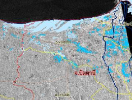 รายงานการติดตามพื้นที่น้ำท่วมปี 2557 โดยใช้ข้อมูลจากดาวเทียม COSMO-SkyMed-3 บันทึกภาพวันที่ 21 ธันวาคม 2557 เวลา 06.28 น. บริเวณบางส่วนของจังหวัดปัตตานี นราธิวาส ยะลา และสงขลา รายละเอียดเพิ่มเติม |