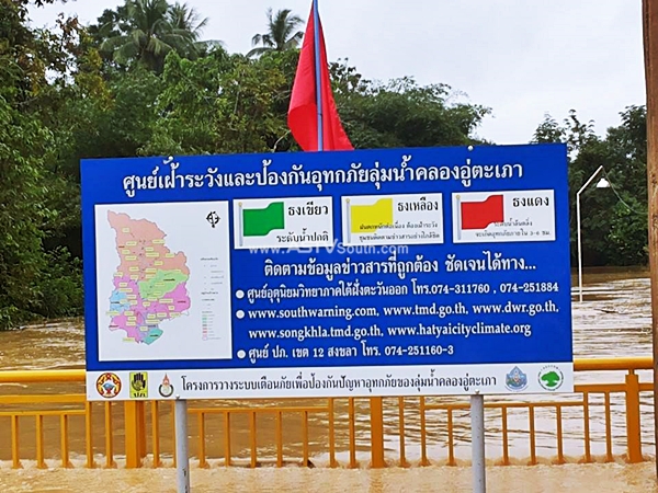 แต่สถานการณ์ที่น่าเป็นห่วงขณะนี้คือ มวลน้ำจากพื้นที่ อ.สะเดา และเทือกเขาแก้วใน อ.หาดใหญ่ เริ่มไหลทะลักเข้าสู่พื้นที่ อ.หาดใหญ่ ส่งผลให้ระดับน้ำในคลองอู่ตะเภา และคลองระบายน้ำ ร.1 (รอหนึ่ง) เพิ่มขึ้นแต่ยังไม่ถึงจุดวิกฤต และยังขึ้นธงสัญลักษณ์สีเขียวทั้ง 2 คลอง