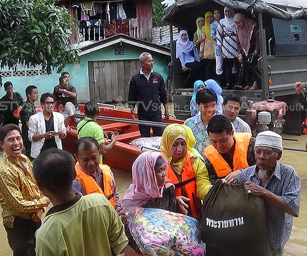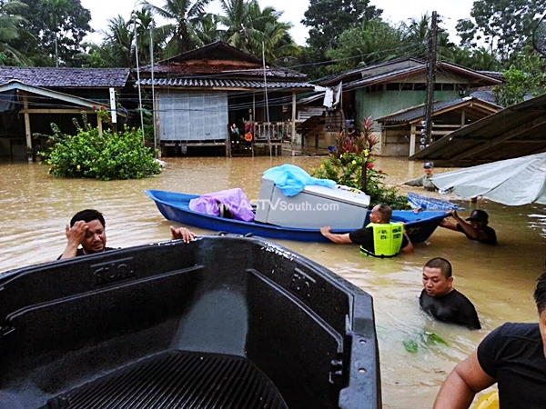 จ.ยะลา 2 ราย สงขลา 3 ราย) ราษฎรได้รับความเดือดร้อน 208,131 ครัวเรือน 643,472 คน อพยพ 7,986 คน บ้านเรือนเสียหายทั้งหลัง 64 หลัง เสียหายบางส่วน