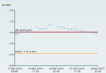 จากการตรวจวัดระดับน้ำโดยสถานีโทรมาตรตรวจวัดระดับน้ำของสถาบันสารสนเทศทรัพยากรน้ำและการเกษตร (องค์การมหาชน) ในพื้นที่ภาคใต้ช่วงวันที่ 13-30 ธ.ค. 57