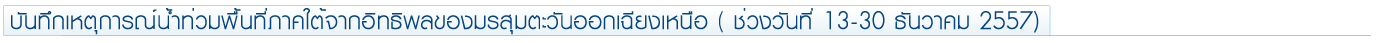 รายงานสถานการณ์อุทกภัยในระหว่างวันที่ 14-31 ธันวาคม 2557 มีรายละเอียดดังนี้