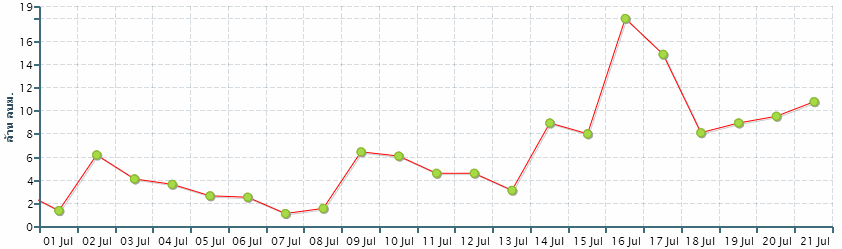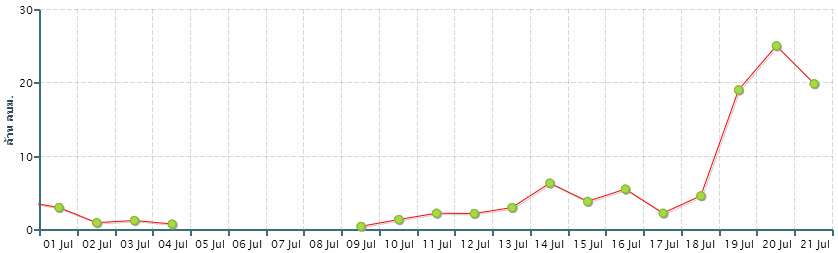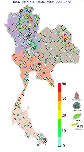 | 14/7/2014 | 18:00:00 | ฝนวานนี้ | กรุงเทพฯ | บางนา สกษ. | จ.กรุงเทพมหานคร | 97.2 | เฝ้าระวังสูงสุด |