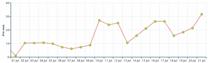 | 9/7/2014 | 16:00:00 | ฝน15-16น. | ต.น้ำมวบ | อ.เวียงสา | จ.น่าน | 34.2 | วิกฤต |