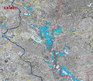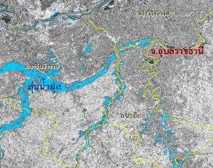 รายงานการติดตามพื้นที่น้้าท่วม ปี 2557 โดยใช้ข้อมูลจากดาวเทียม COSMO-SkyMed-1 บันทึกภาพวันที่ 31 กรกฎาคม 2557 เวลา 06.02 น. บริเวณบางส่วนของจังหวัดยโสธ ศรีสะเกษ อ้านาจเจริญ และอุบลราชธานี รายละเอียดเพิ่มเติม |