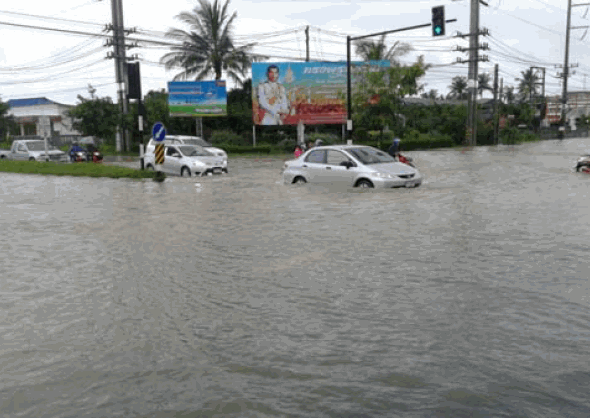 อำนาจเจริญจมบาดาลทั้งเมือง หนักสุดในรอบ 30 ปี น้ำท่วมถนนสูง 1 เมตร ต้องปิดการจราจร