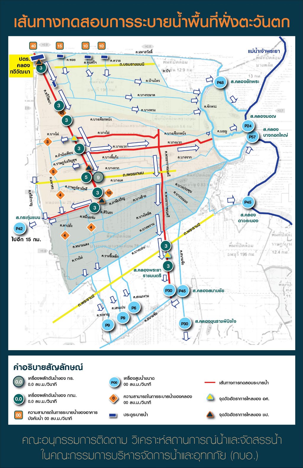 สรุปข้อมูลการทดสอบประสิทธิภาพการระบายน้ำในพื้นที่ฝั่งตะวันตก วันที่ 5 กันยายน 2555
