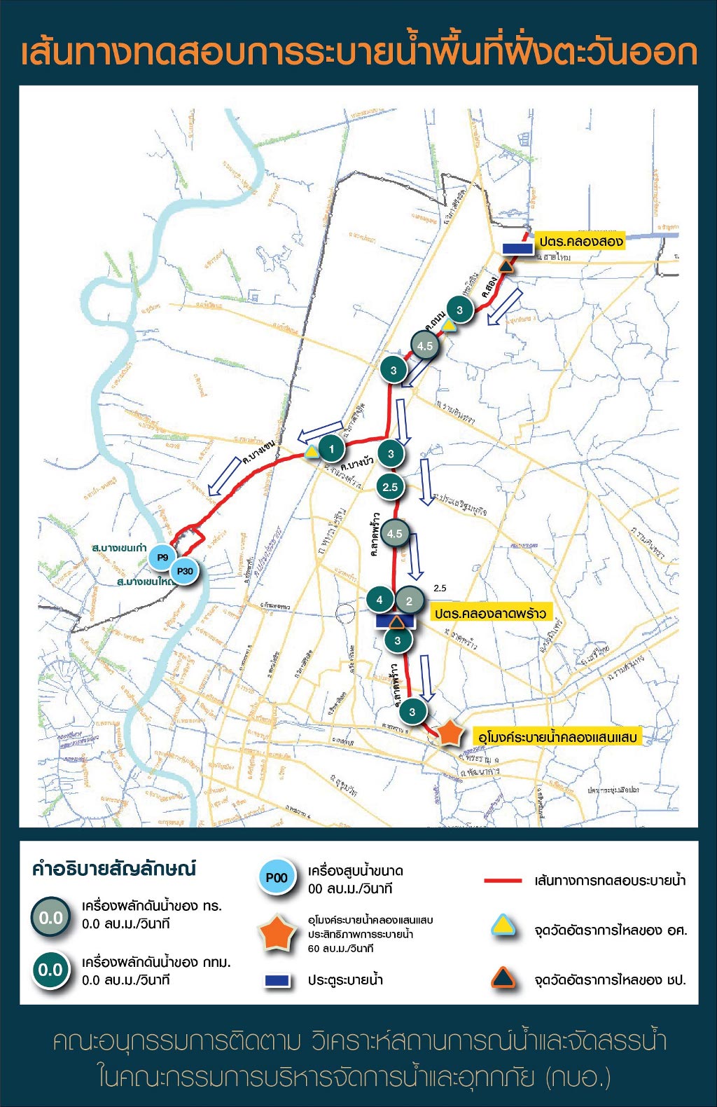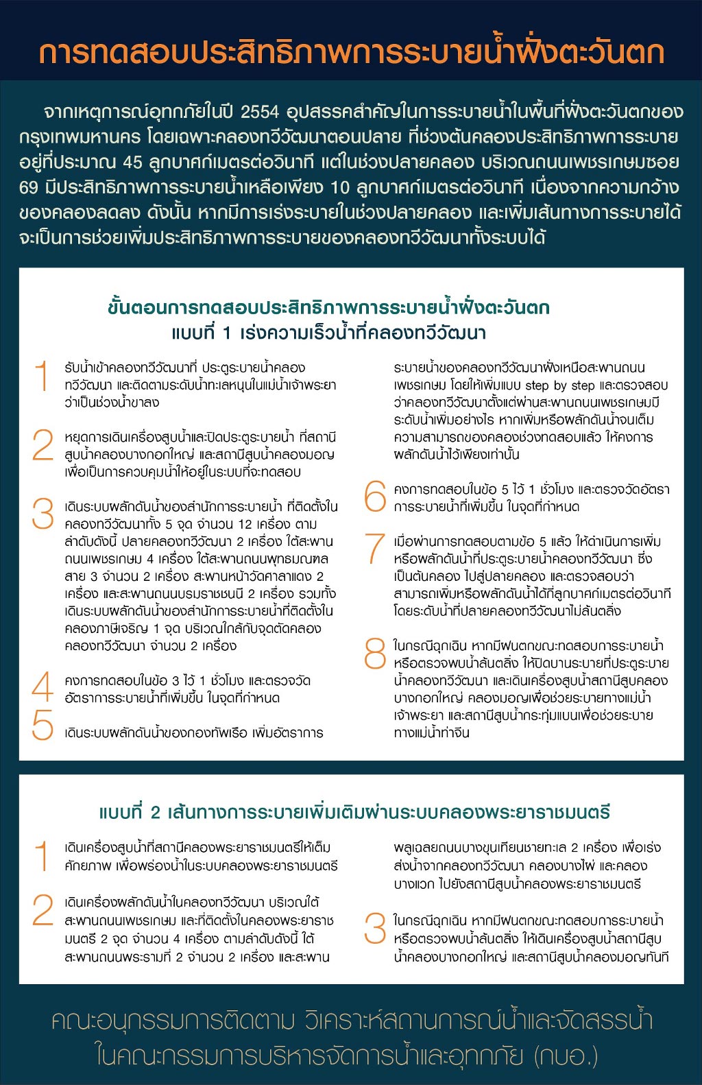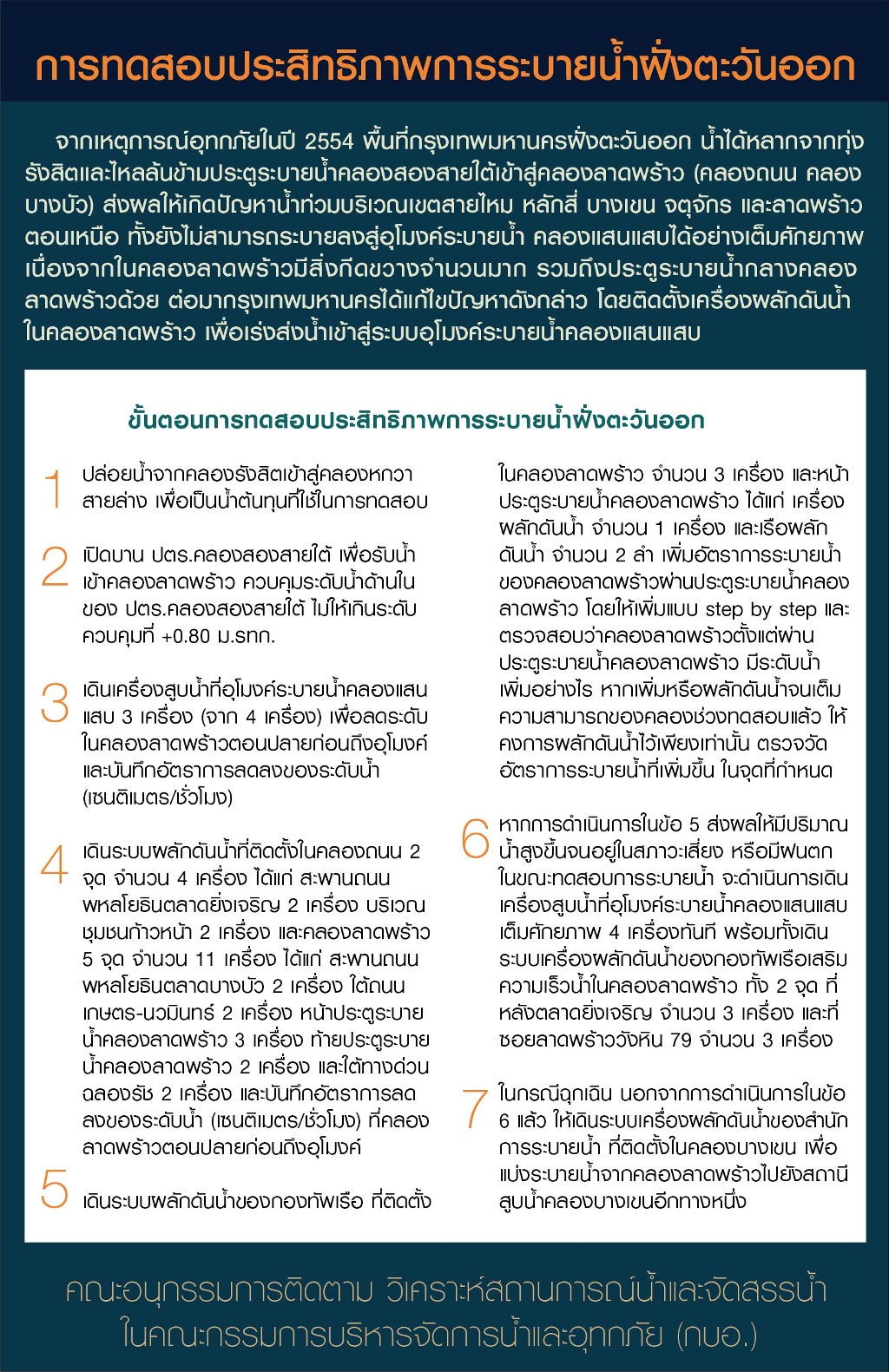 สรุปการทดสอบประสิทธิภาพการระบายน้ำในพื้นที่ฝั่งตะวันออก วันที่ 6-7 กันยายน 2555